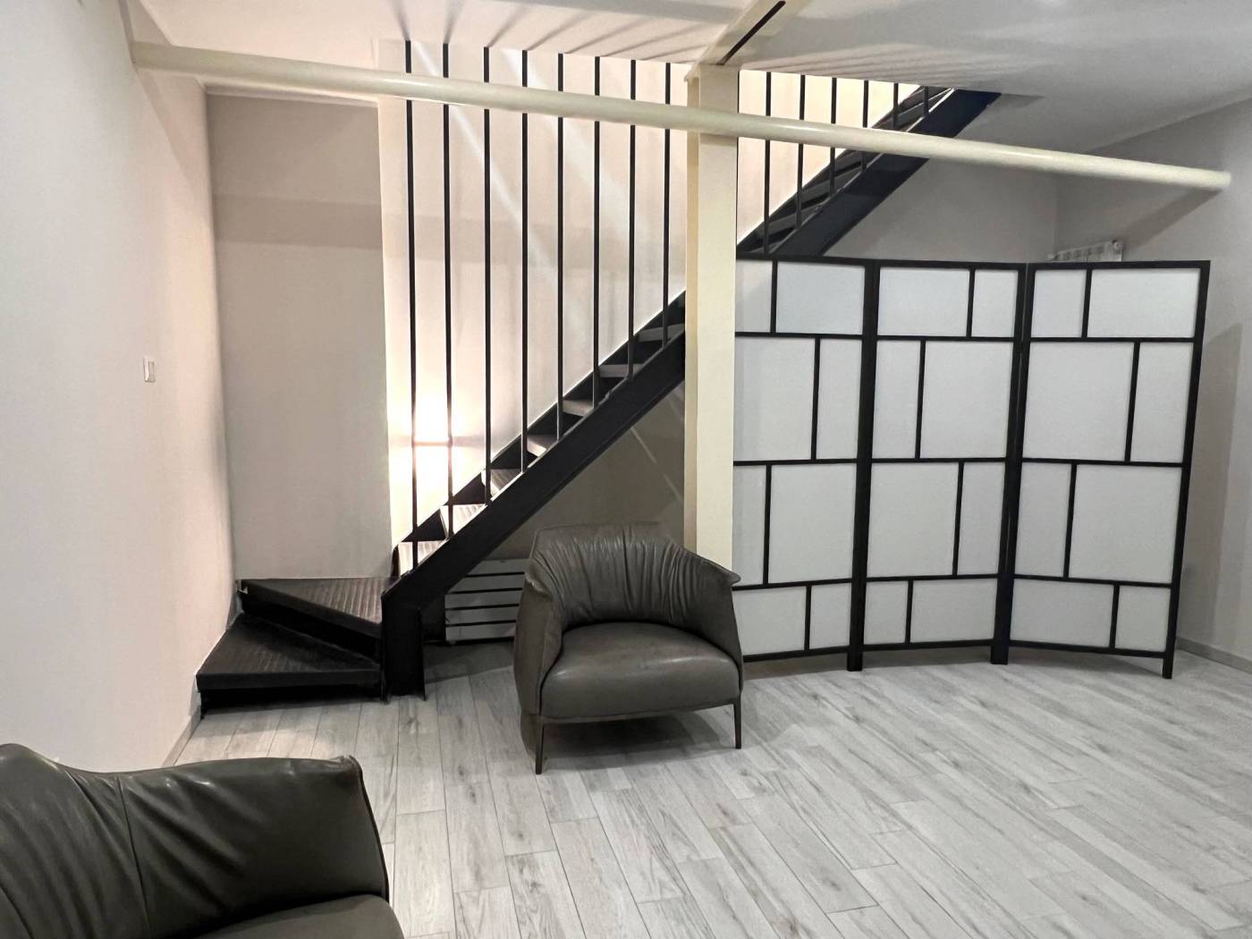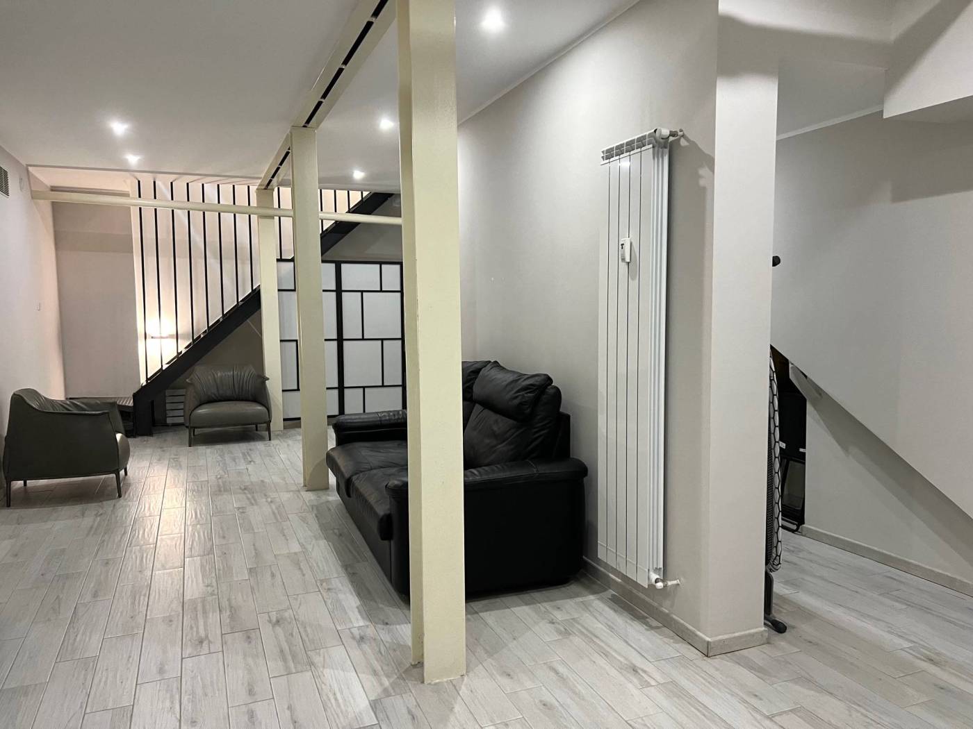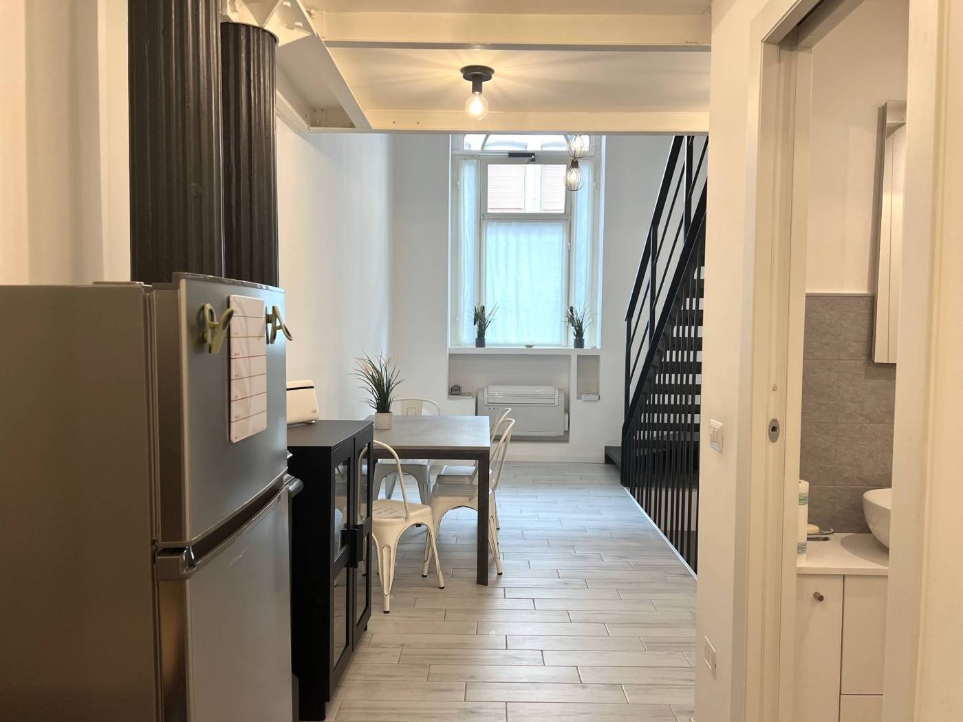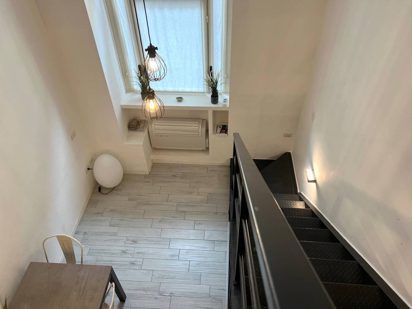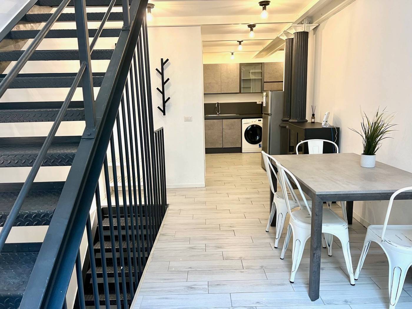 L'appartamento si sviluppa sui piani terra, soppalco e primo sottostrada ed é composto da: ingresso su cucina con zona pranzo/living, anti-bagno e bagno al piano terra, da camera matrimoniale al piano soppalco al quale si accede da scala di design e da ampio locale pluriuso al piano primo sottostrada.