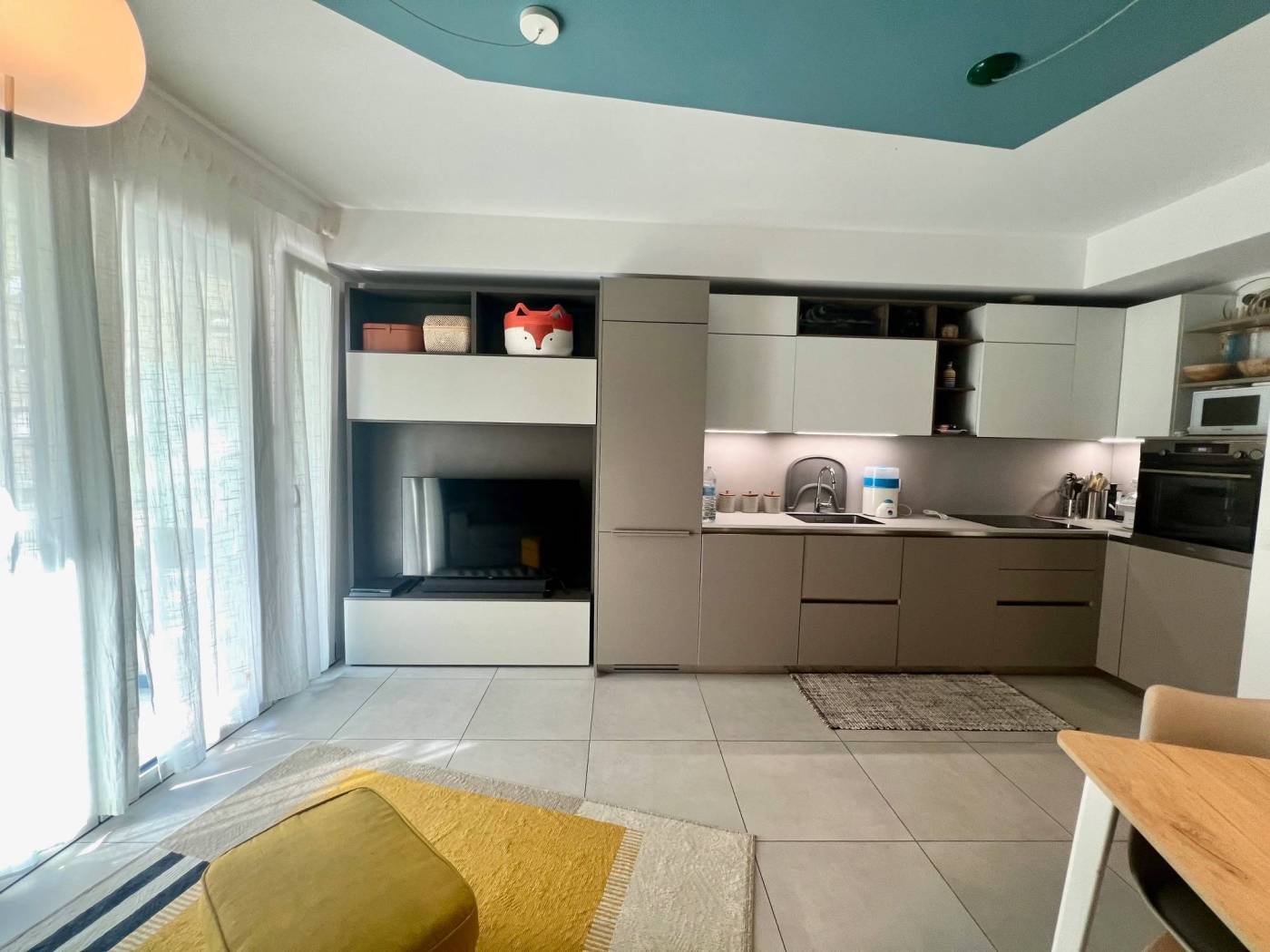La soluzione abitativa é finemente arredata con gusto e mobili di design.