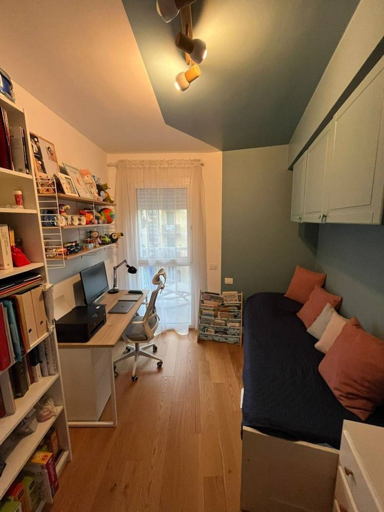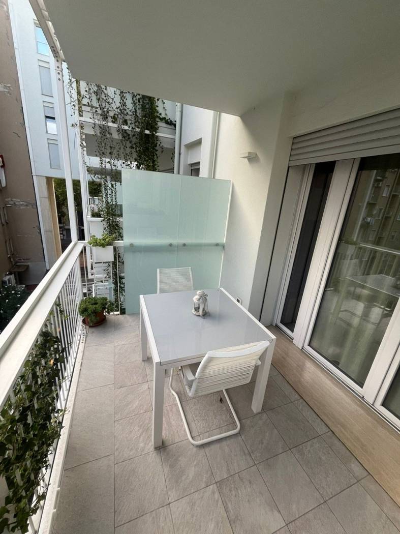 L'appartamento é sito al piano quarto, ha un doppio affaccio interno e silenzioso ed é composto da: ampio ingresso, soggiorno con cucina a vista e grazioso balcone/loggia comodamente sfruttabile per pranzi/cene, ampio bagno, camera matrimoniale, seconda camera e grande terrazzo/loggia vivibile.