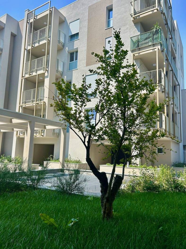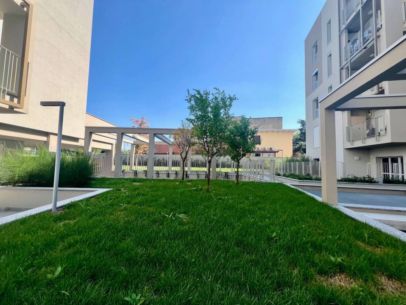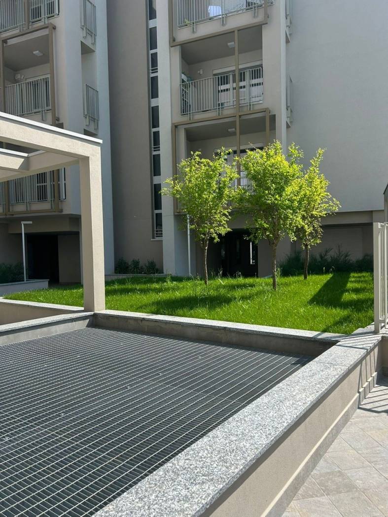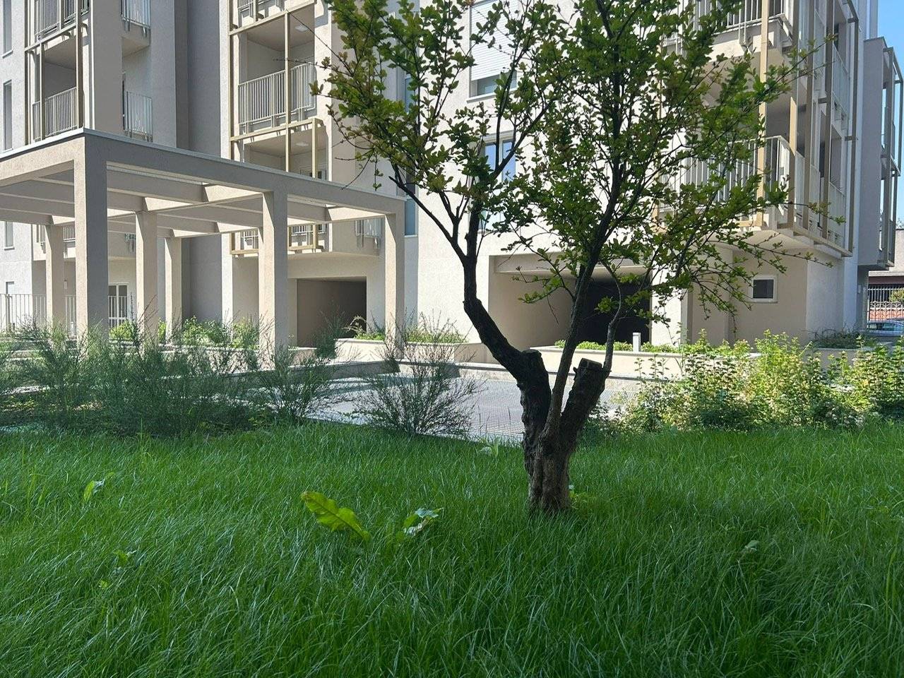 Il complesso immobiliare che si distingue per il design moderno ha un gradevole giardino comune verde e piantumato.