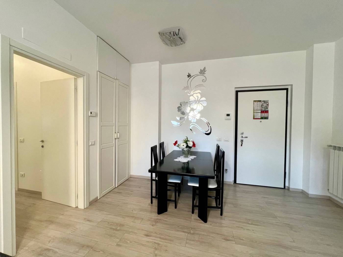L'unità abitativa é luminosa e molto silenziosa, ha finiture ottime e dal design moderno: porta blindata grado 3, serramenti nuovi in pvc con doppi vetri, tapparelle elettriche, videocitofono.