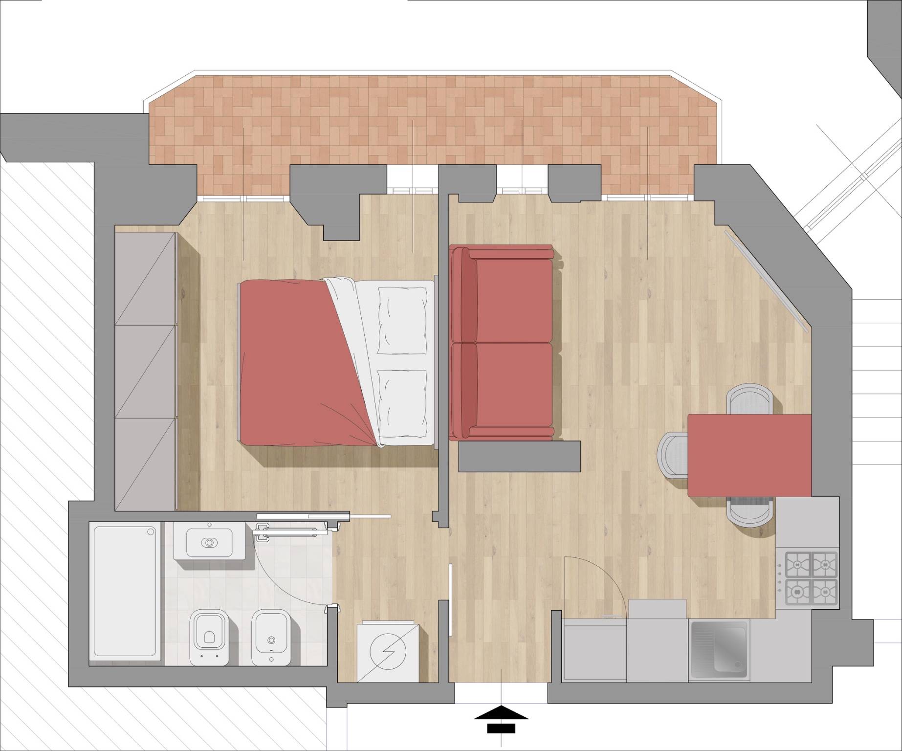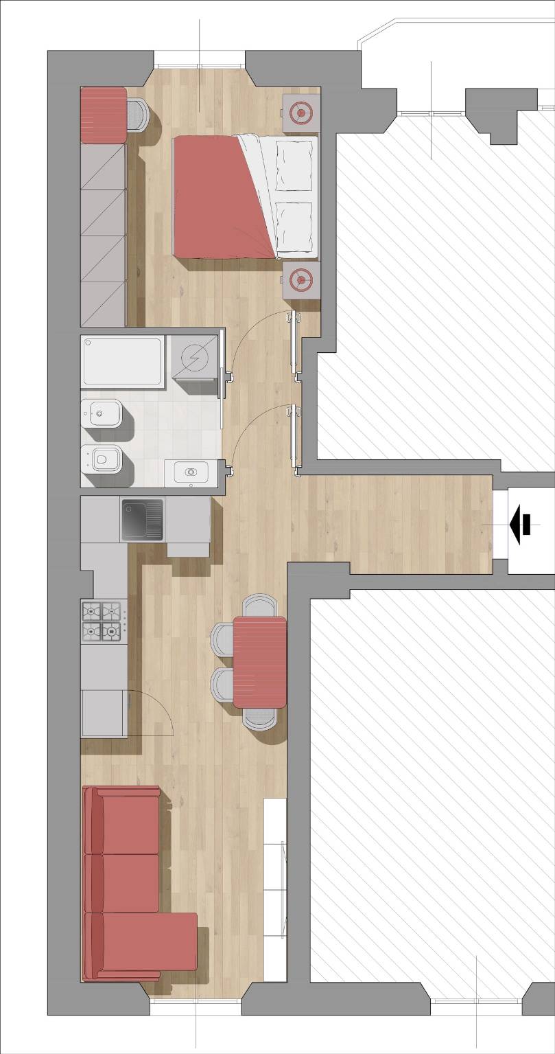 Gli appartamenti vengono consegnati pronti per essere abitati, sono infatti completi di arredi realizzati su misura, inclusi cucina con elettrodomestici (fuochi, frigo/freezer, forno, lavastoviglie), divano letto e mobile living, letto matrimoniale e ampio armadio, bagno completo di sanitari, cristallo doccia, mobile lavabo e specchiera.