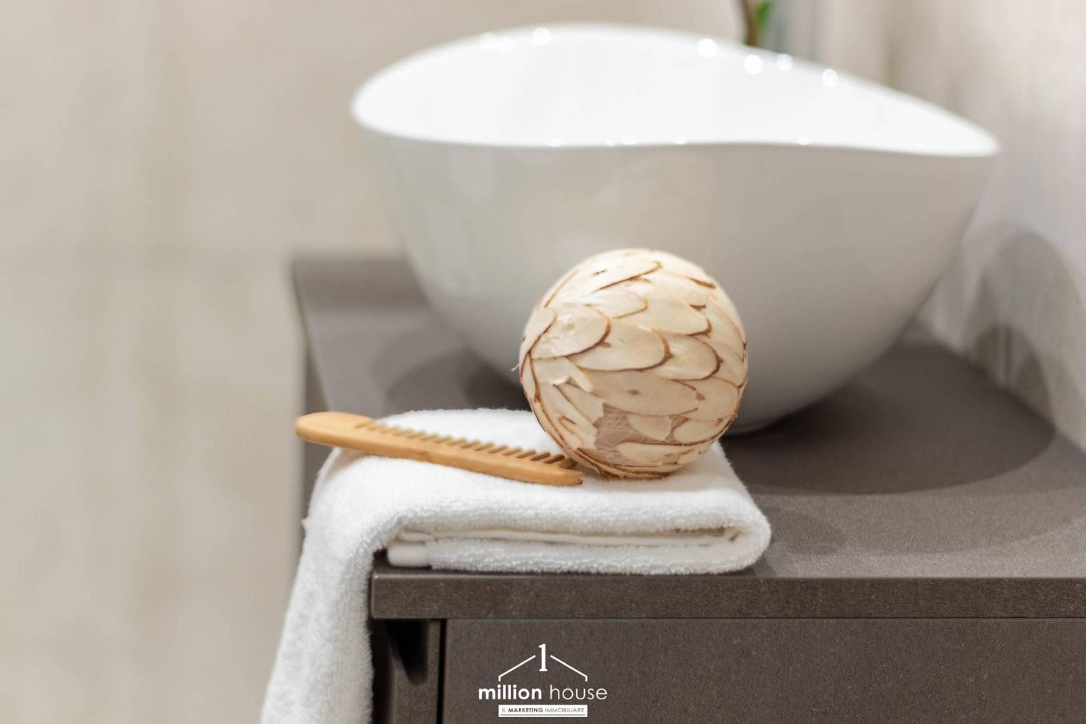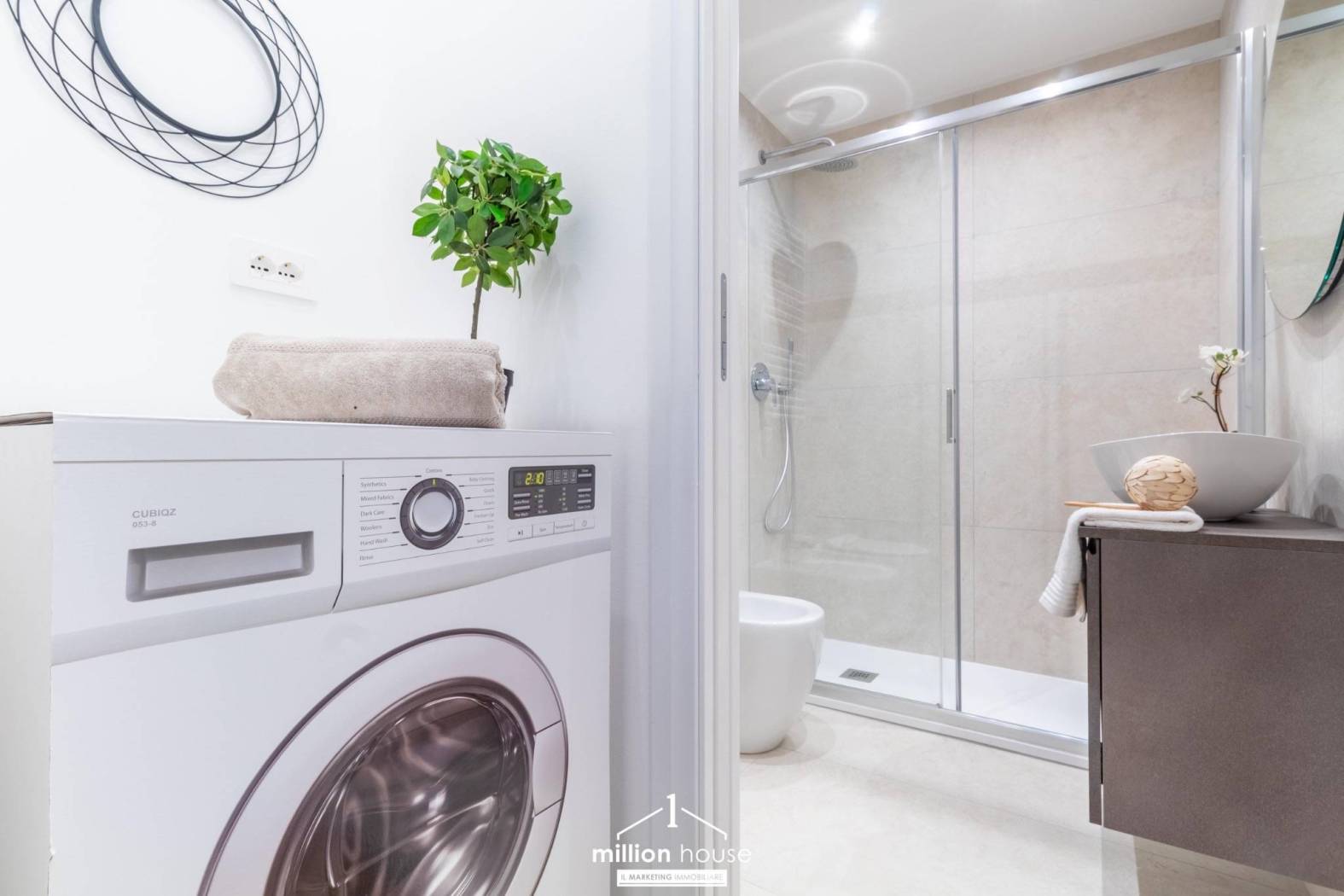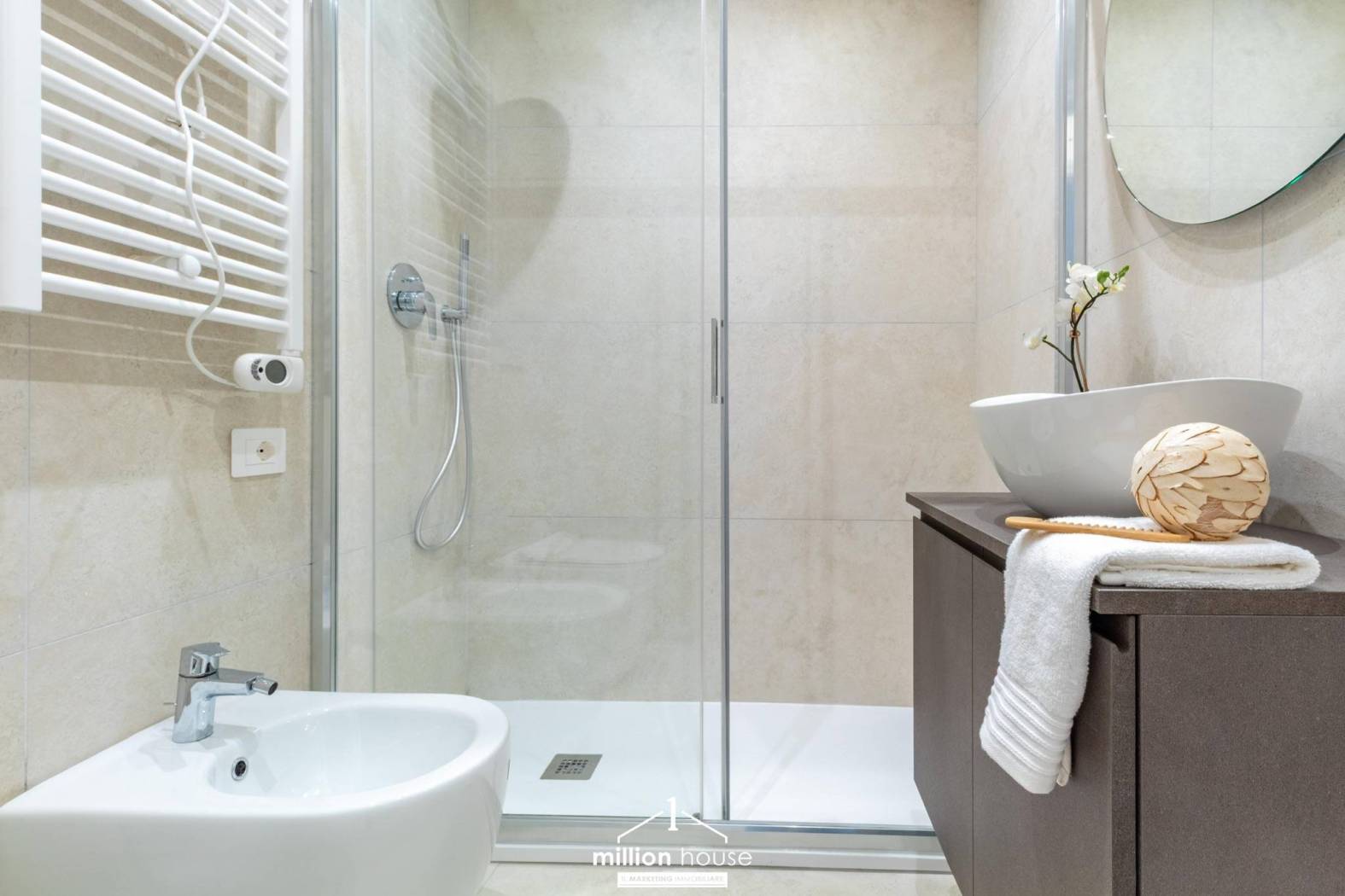 Le finiture sono signorili: parquet in rovere "lisca di pesce italiana", rivestimenti bagno di design, serramenti interni scorrevoli, serramenti esterni in pvc con doppi vetri, tapparelle elettriche, porta blindata, illuminazione ambienti a soffitto con faretti e profili LED, aria condizionata.