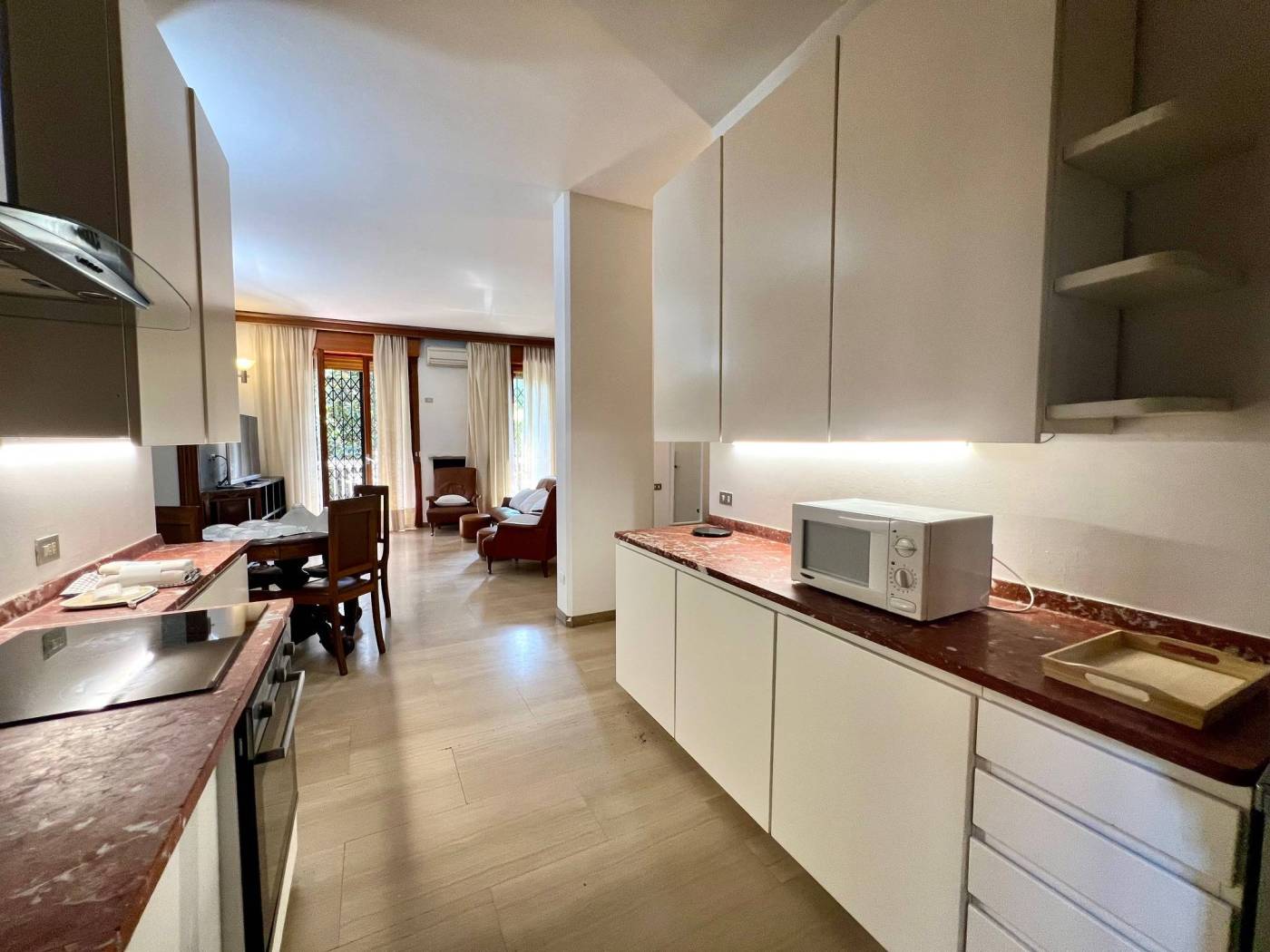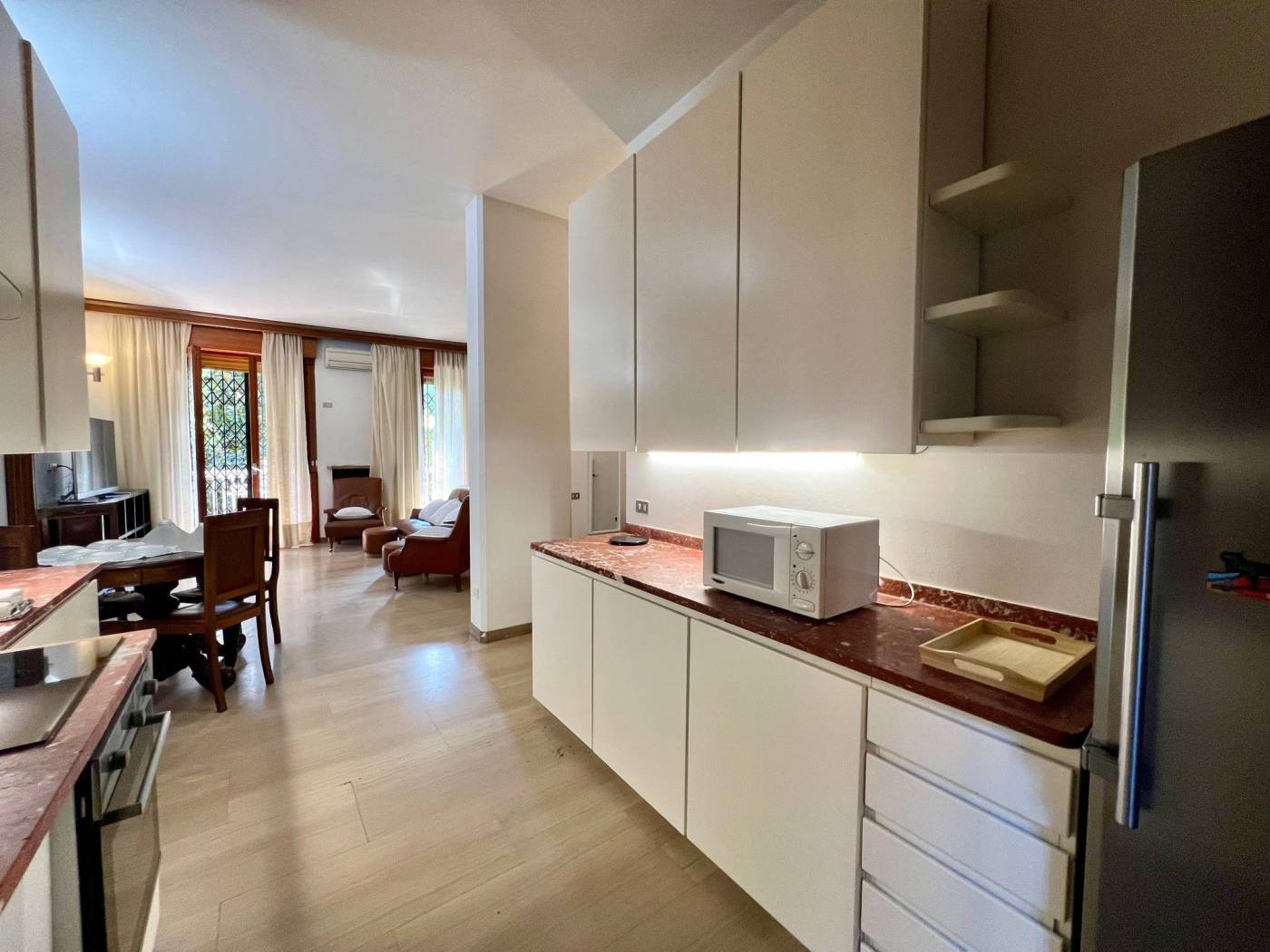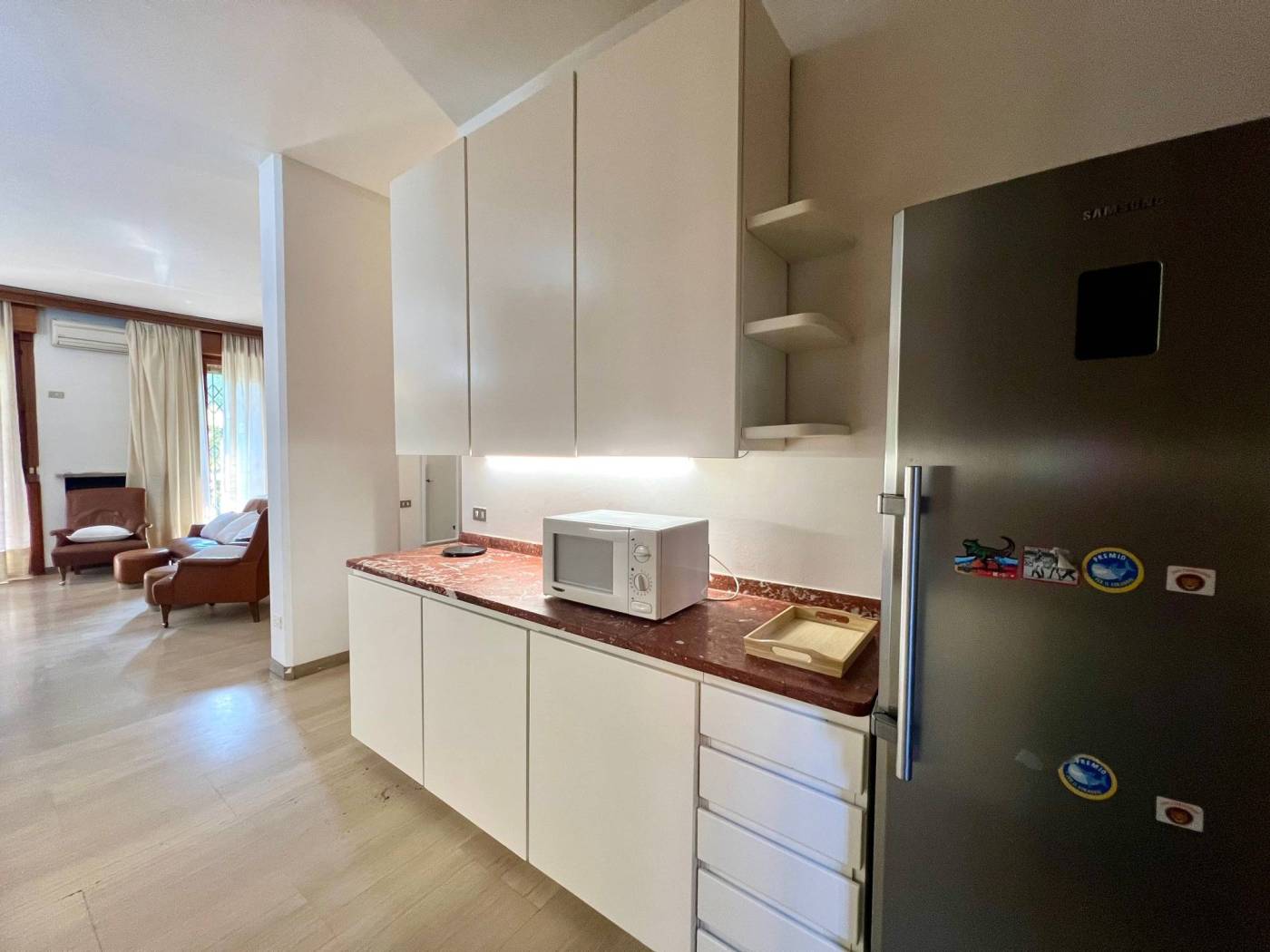 Soluzione arredata e completa di tutti gli elettrodomestici.