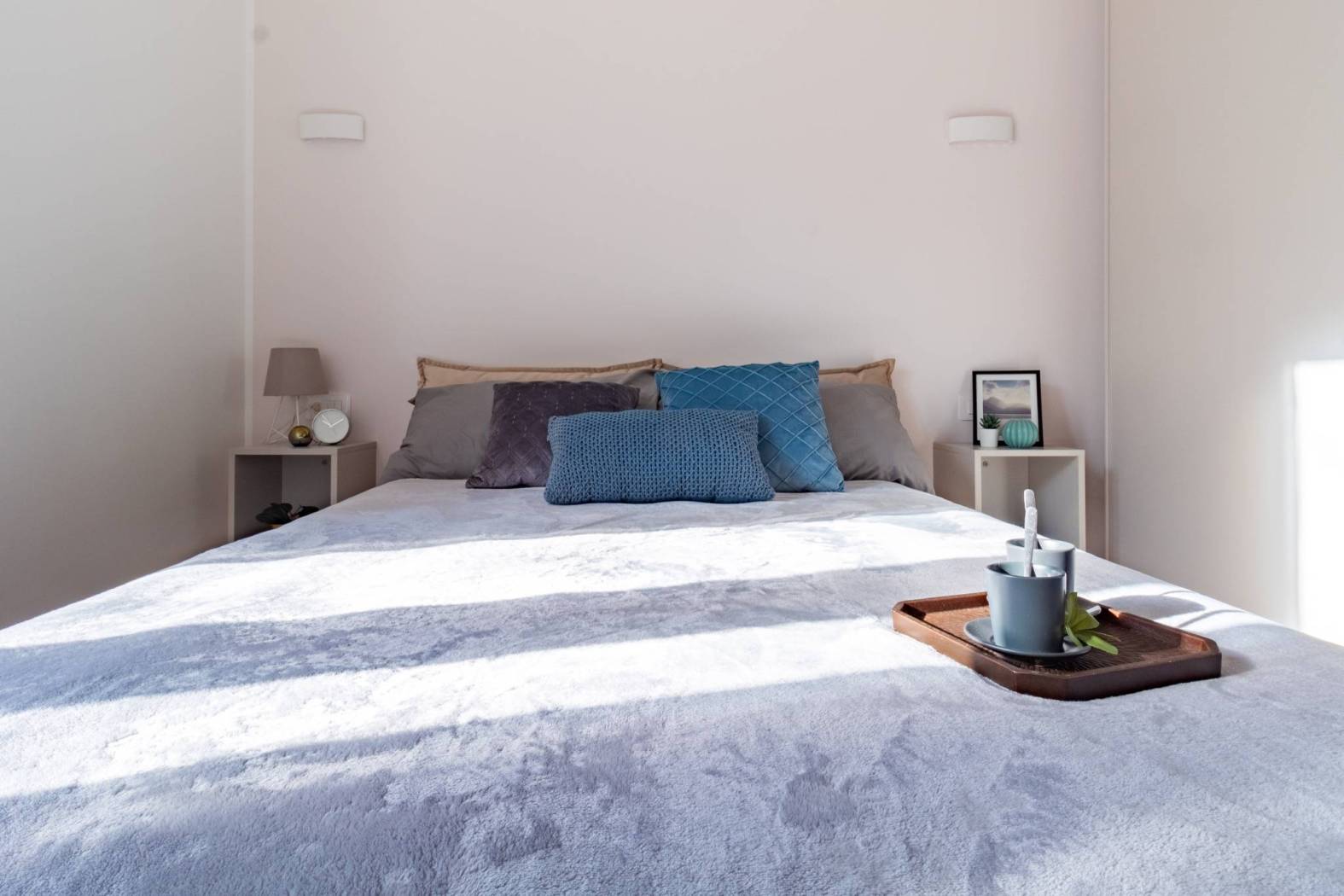 L'appartamento viene consegnato "full optional" pronto per essere abitato, completo di arredi realizzati su misura, inclusi cucina con elettrodomestici (fuochi, frigo/freezer, forno, lavastoviglie), divano letto e mobile living, letto matrimoniale contenitore e ampio armadio, bagno completo di sanitari, cristallo doccia, mobile lavabo e specchiera.