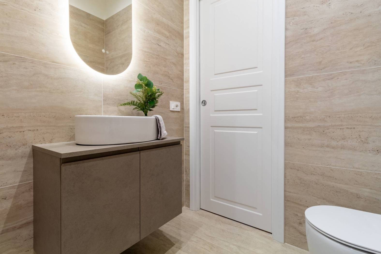 Le finiture sono eleganti: parquet in rovere "lisca di pesce italiana", rivestimenti bagno di design, serramenti interni scorrevoli, serramenti esterni in pvc con doppi vetri, tapparelle elettriche, porta blindata, illuminazione ambienti a soffitto con faretti e profili LED, aria condizionata.