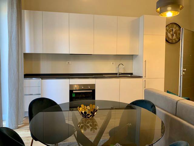 L'appartamento ha un luminoso affaccio esterno ed é composto da soggiorno con cucina a vista, camera matrimoniale, disimpegno con ripostiglio in quota, bagno e balcone. E' molto funzionale ed elegante ed é dotato di serramenti esterni con doppi vetri, tapparelle elettriche, porta blindata, videocitofono, predisposizione aria condizionata.