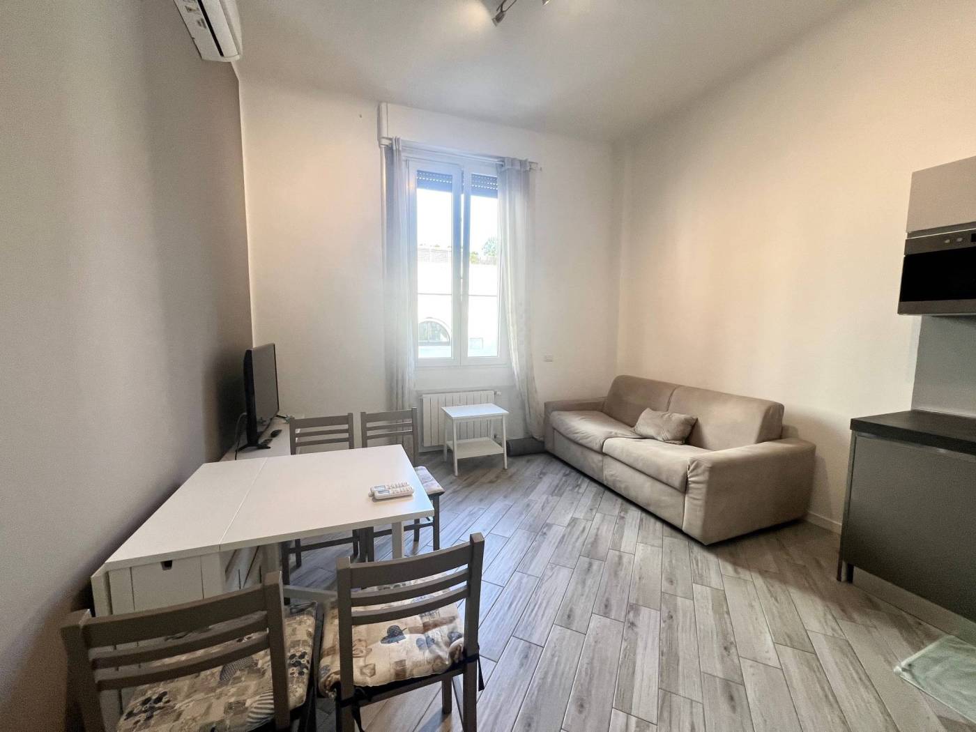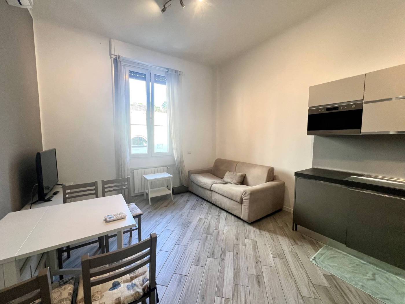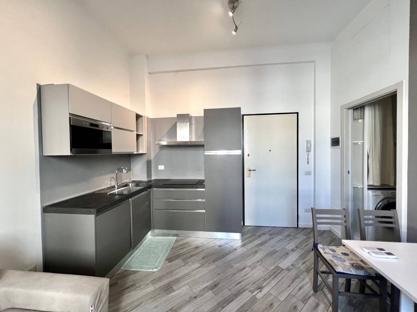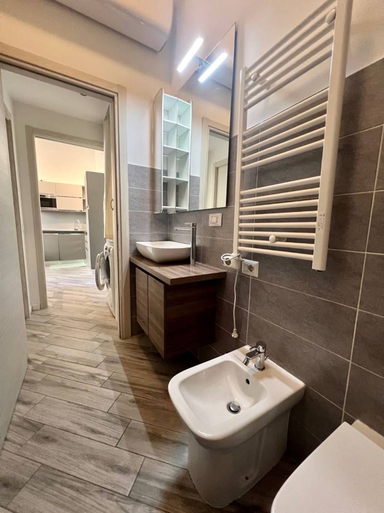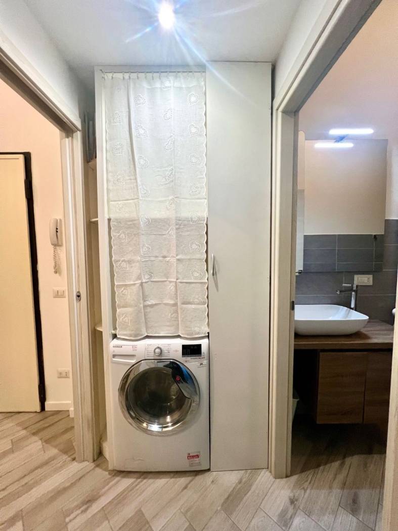 L'unità immobiliare viene locata completamente arredata: dispone di cucina attrezzata con piastre a induzione, elettrodomestici, lavastoviglie, lavatrice, tavolo e sedie, divano letto nel soggiorno, doppio letto nella camera matrimoniale, armadi. Soluzione confortevole.