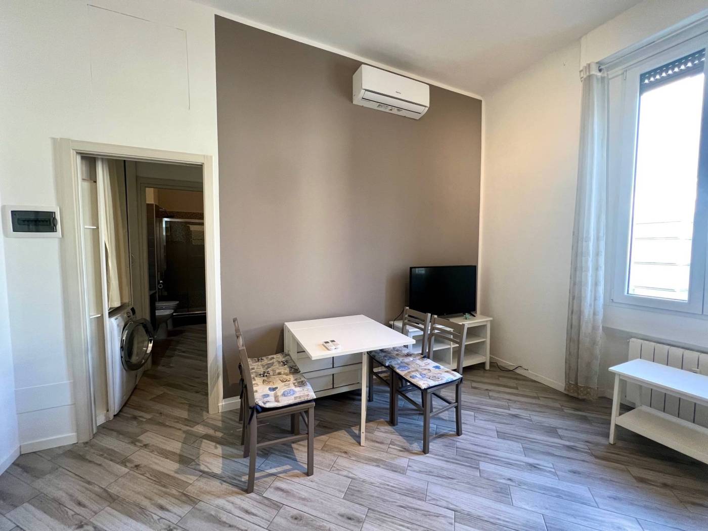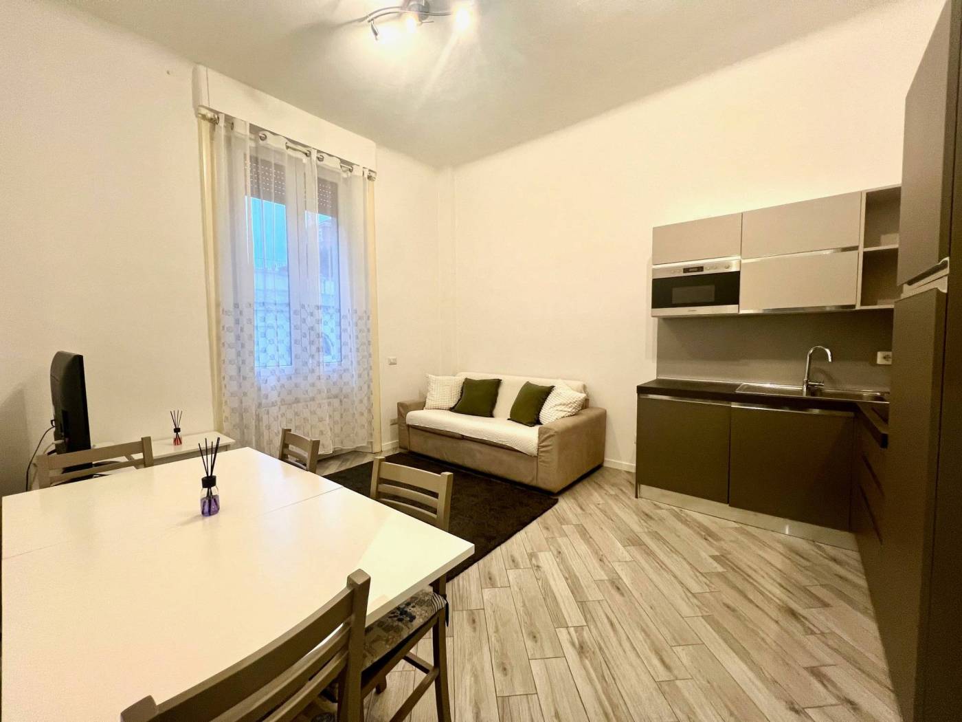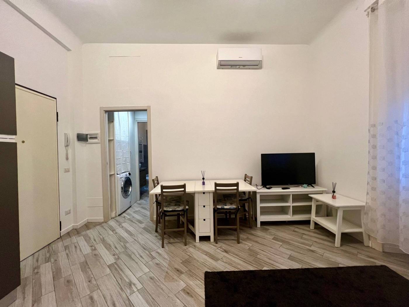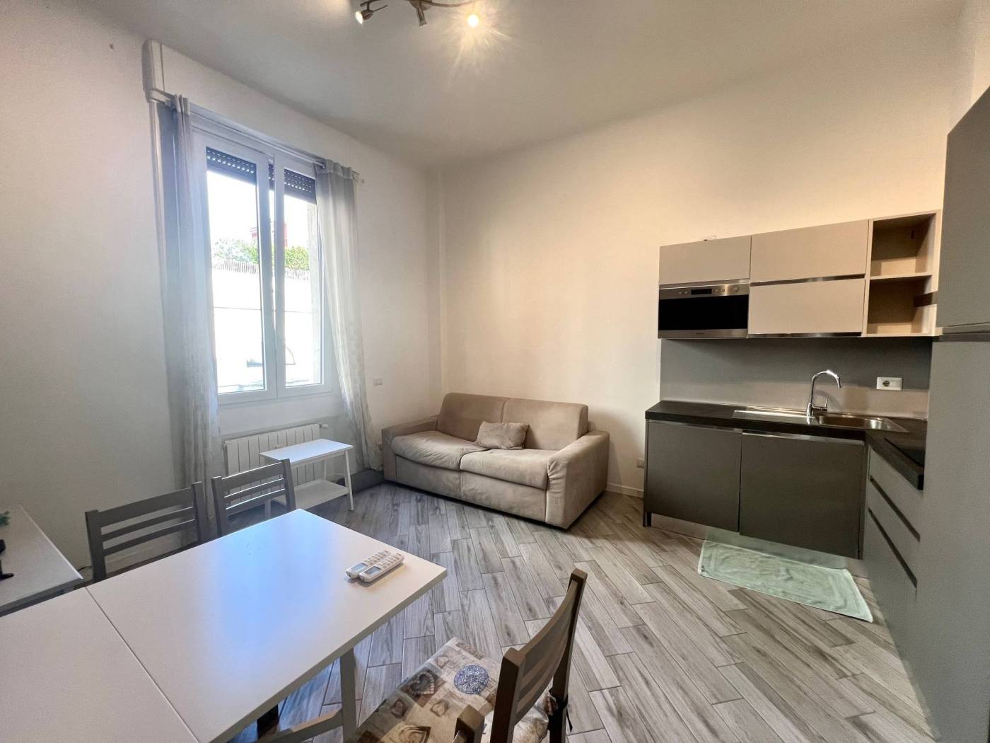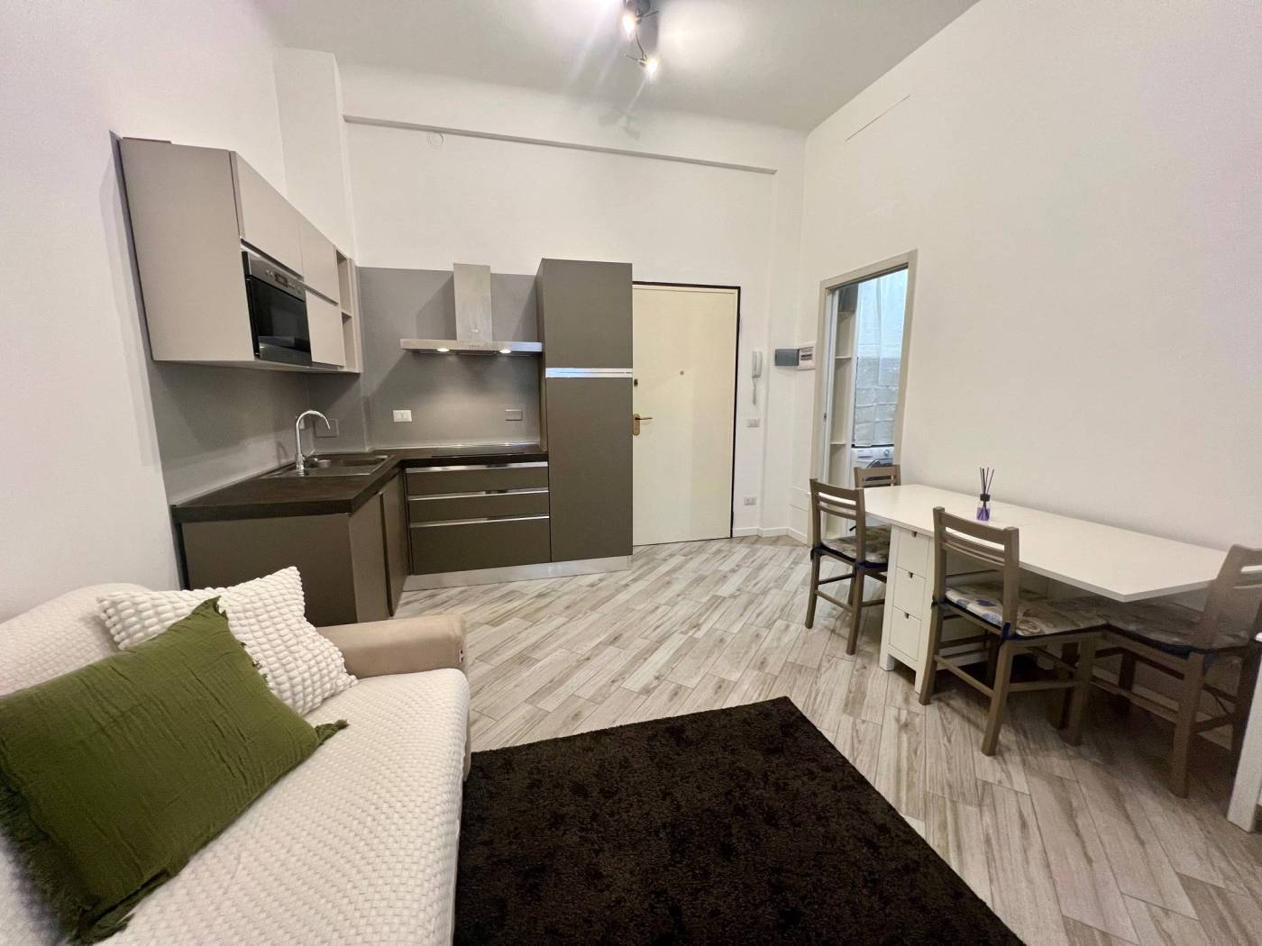 L'unità immobiliare viene locata completamente arredata: dispone di cucina attrezzata con piastre a induzione, elettrodomestici, lavastoviglie, lavatrice, tavolo e sedie, divano letto nel soggiorno, doppio letto nella camera matrimoniale, armadi. Soluzione confortevole.