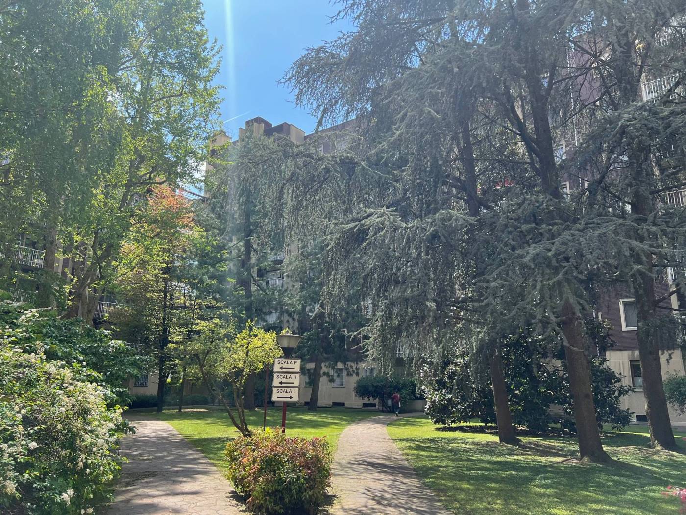 L'appartamento é sito al piano secondo di un palazzo in ottime condizioni di manutenzione ed ha un gradevolissimo doppio affaccio, sia sul rigoglioso verde interno sia sull'esterno luminoso e tranquillo.