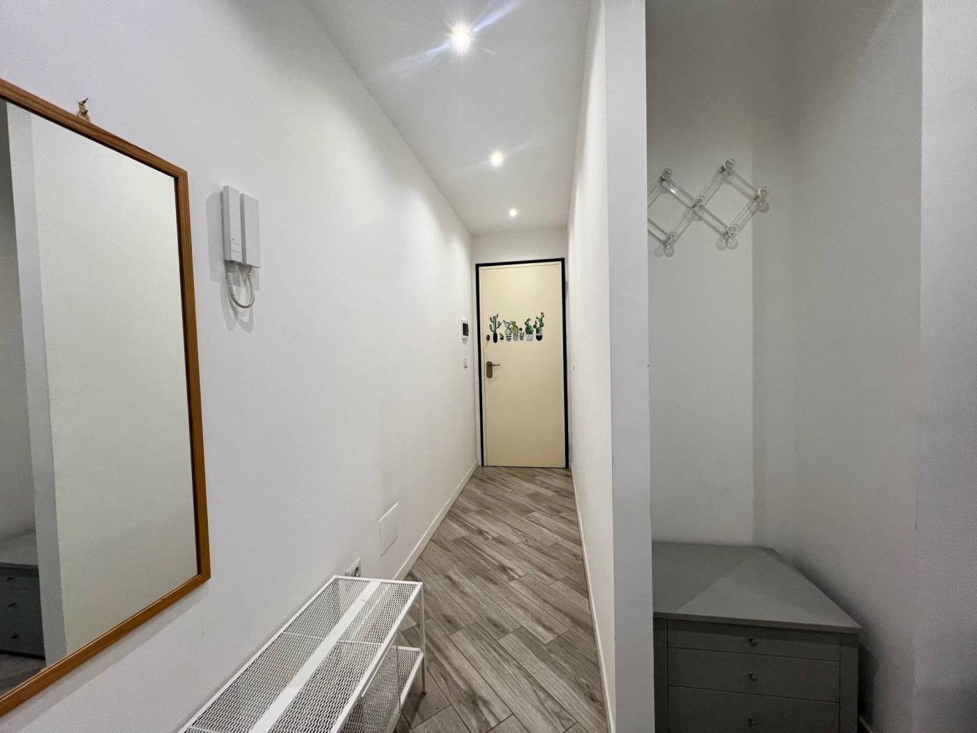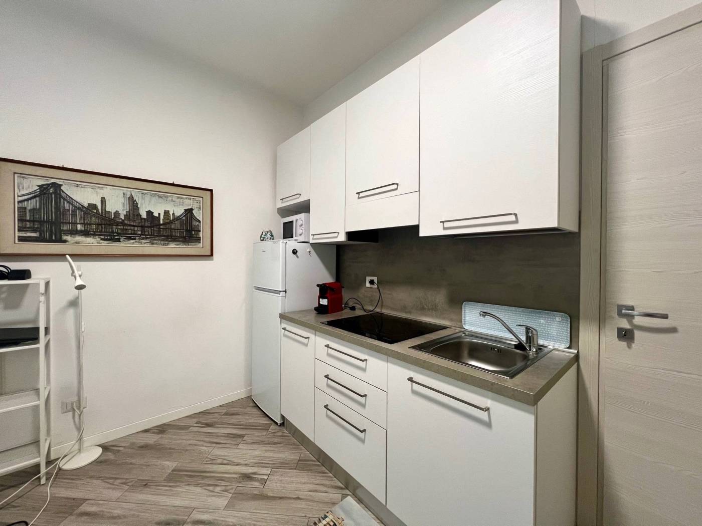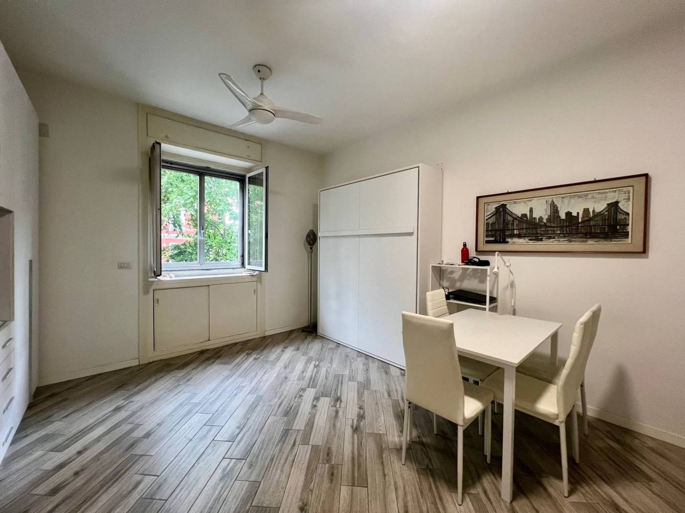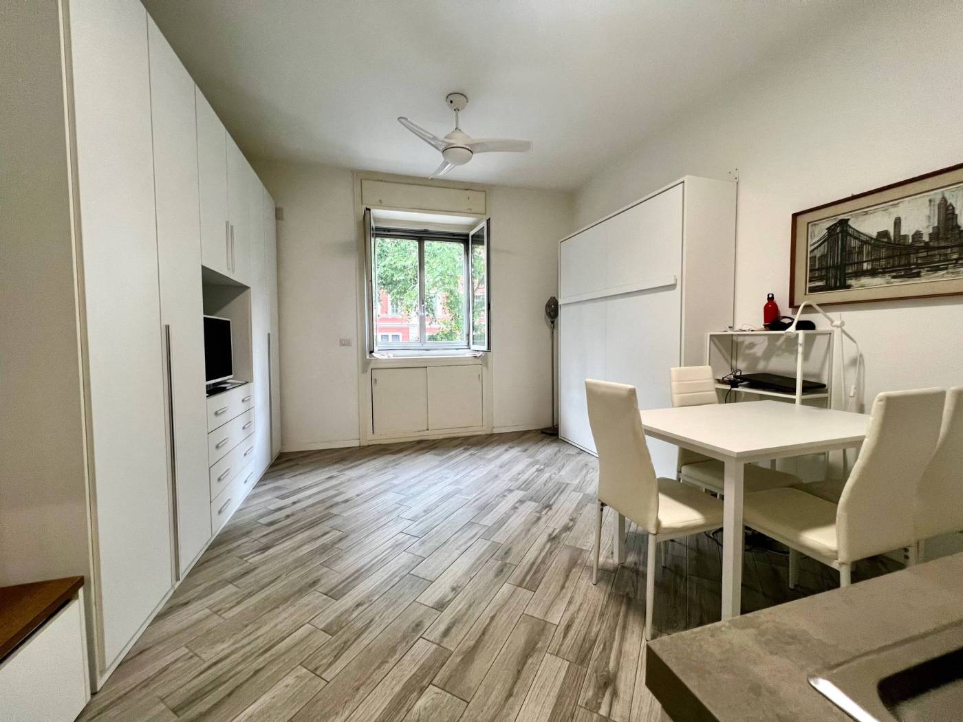 Viene locata completamente arredata con arredi comprensivi di cucina attrezzata con piastre a induzione, frigo/freezer, forno a microonde, TV, tavolo con sedie, letto matrimoniale a scomparsa e comodo armadio.