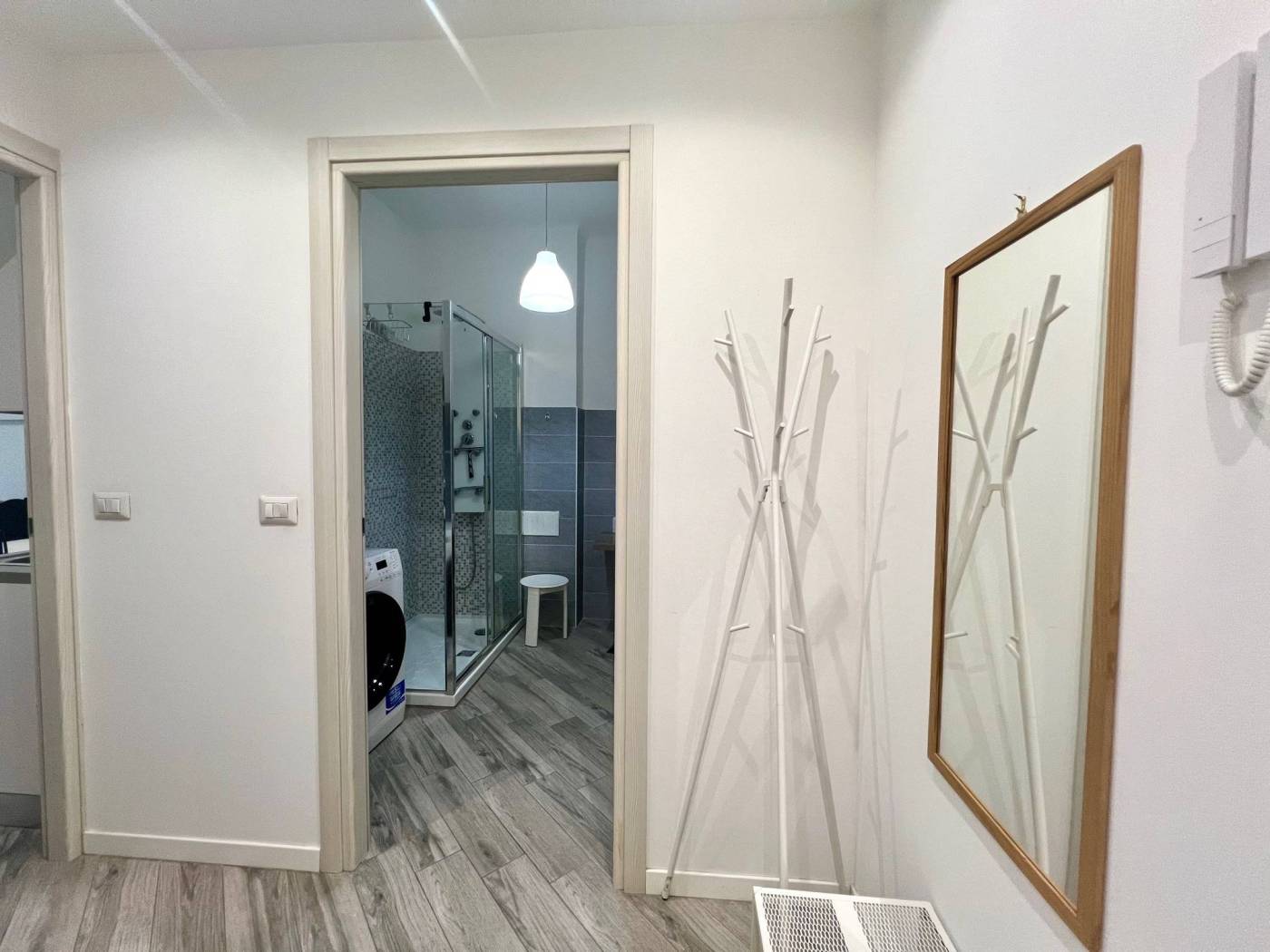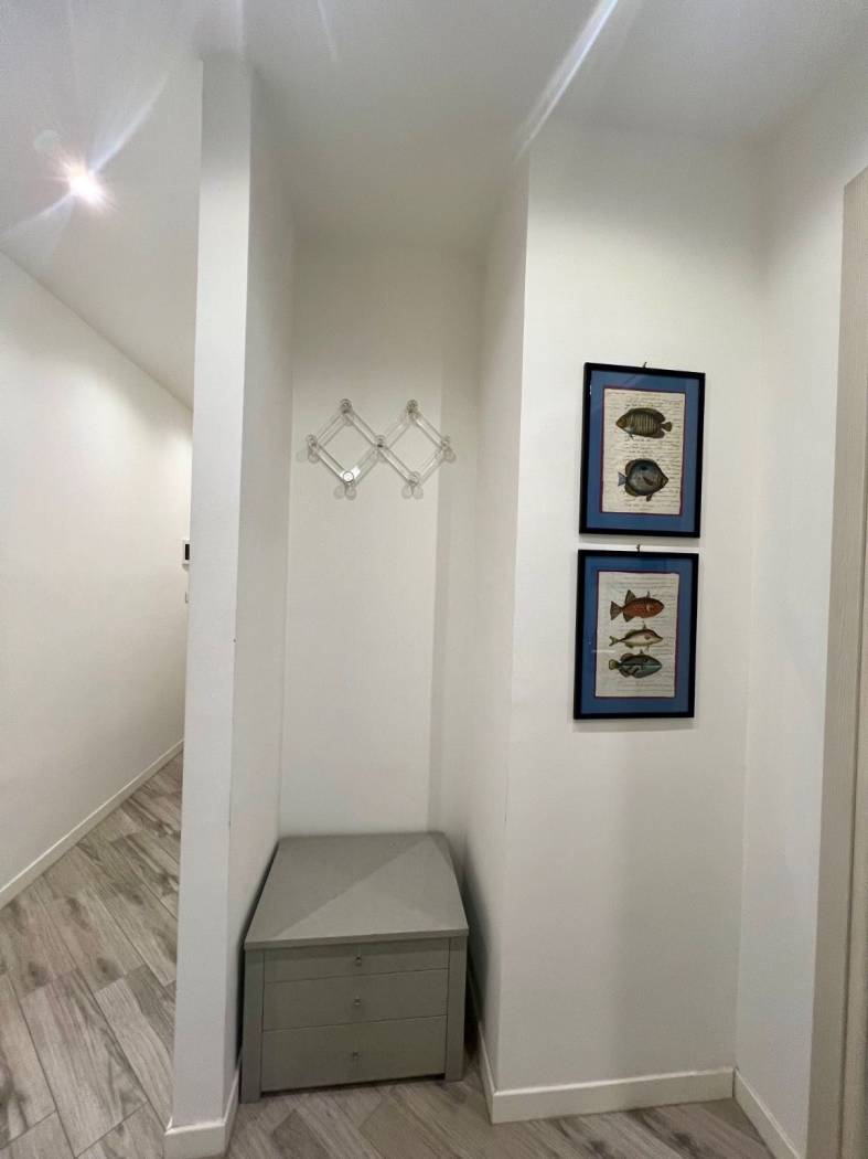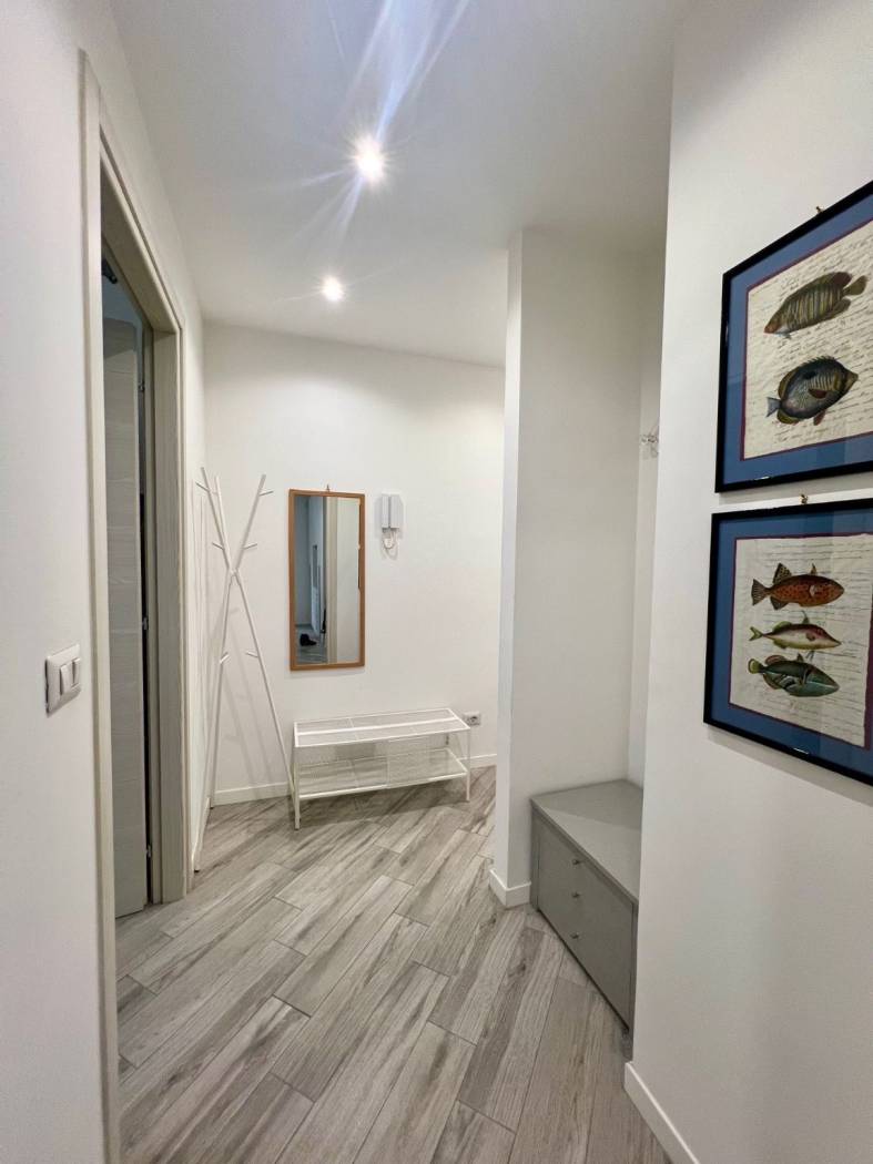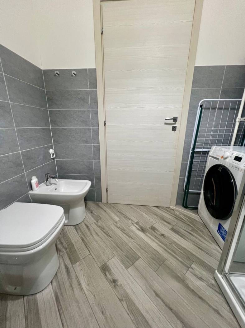 Finiture ottime. Gres porcellanato con venature grigie, serramenti esterni doppi. Grande doccia con colonna idromassaggio.