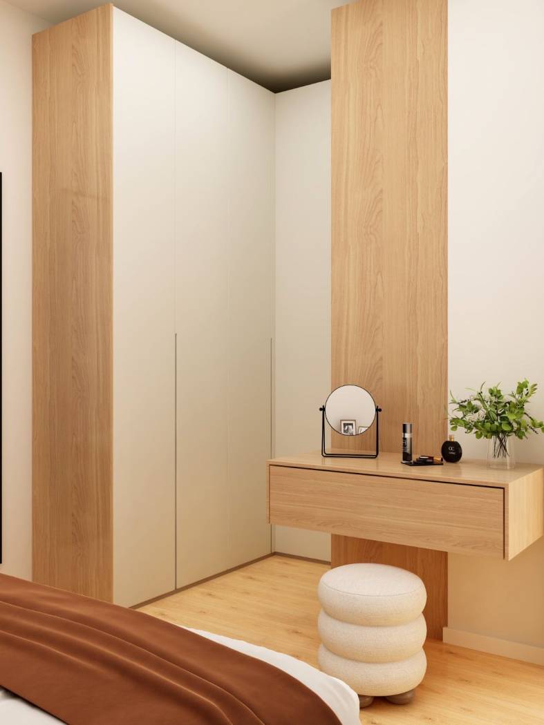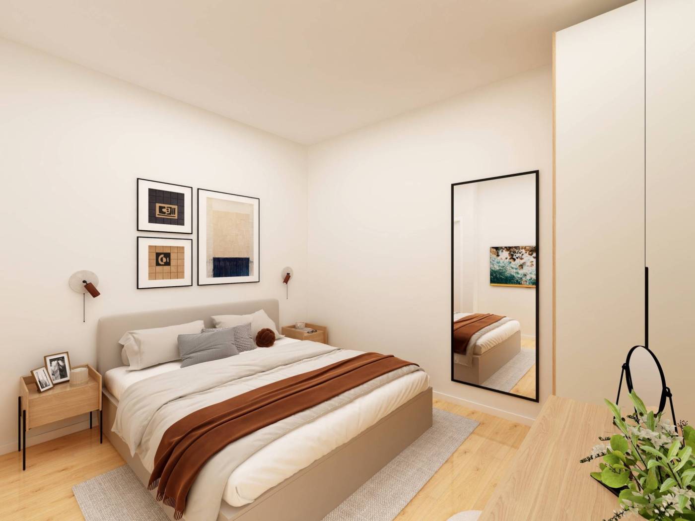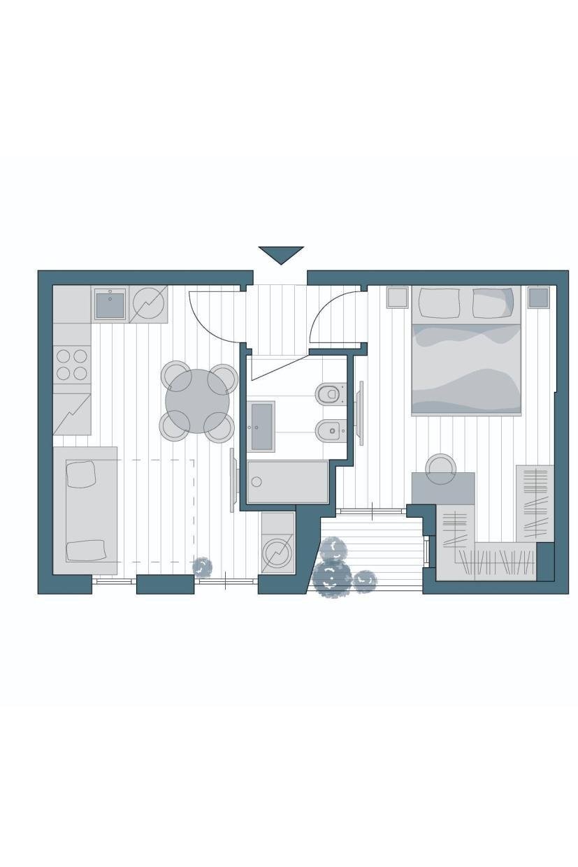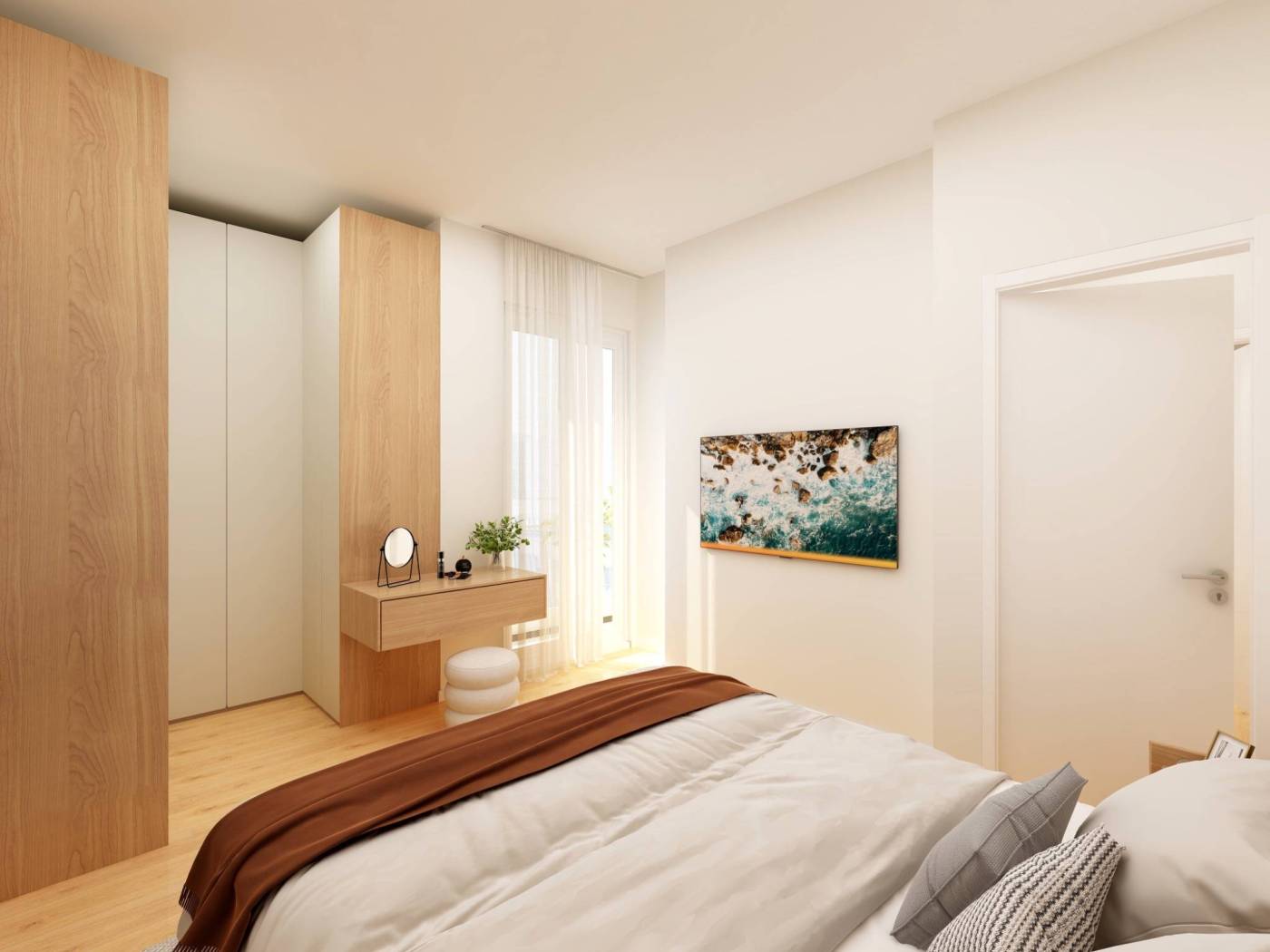 Si compone di: ingresso, zona giorno con cucina a vista, living ed angolo lavanderia, camera matrimoniale con zona cabina armadio e balcone, bagno.