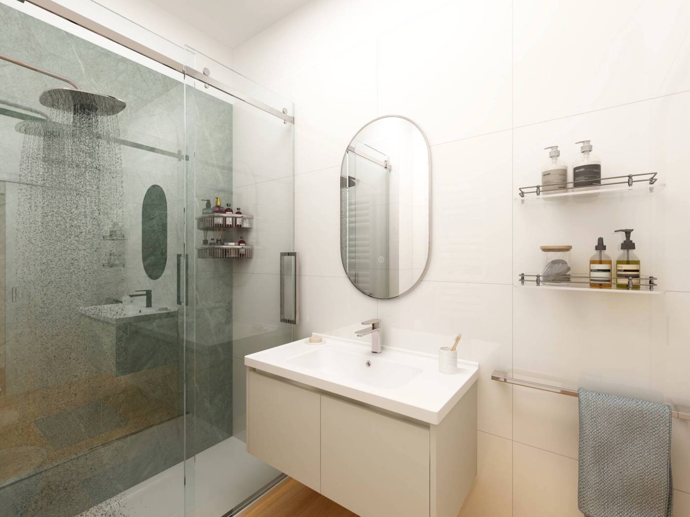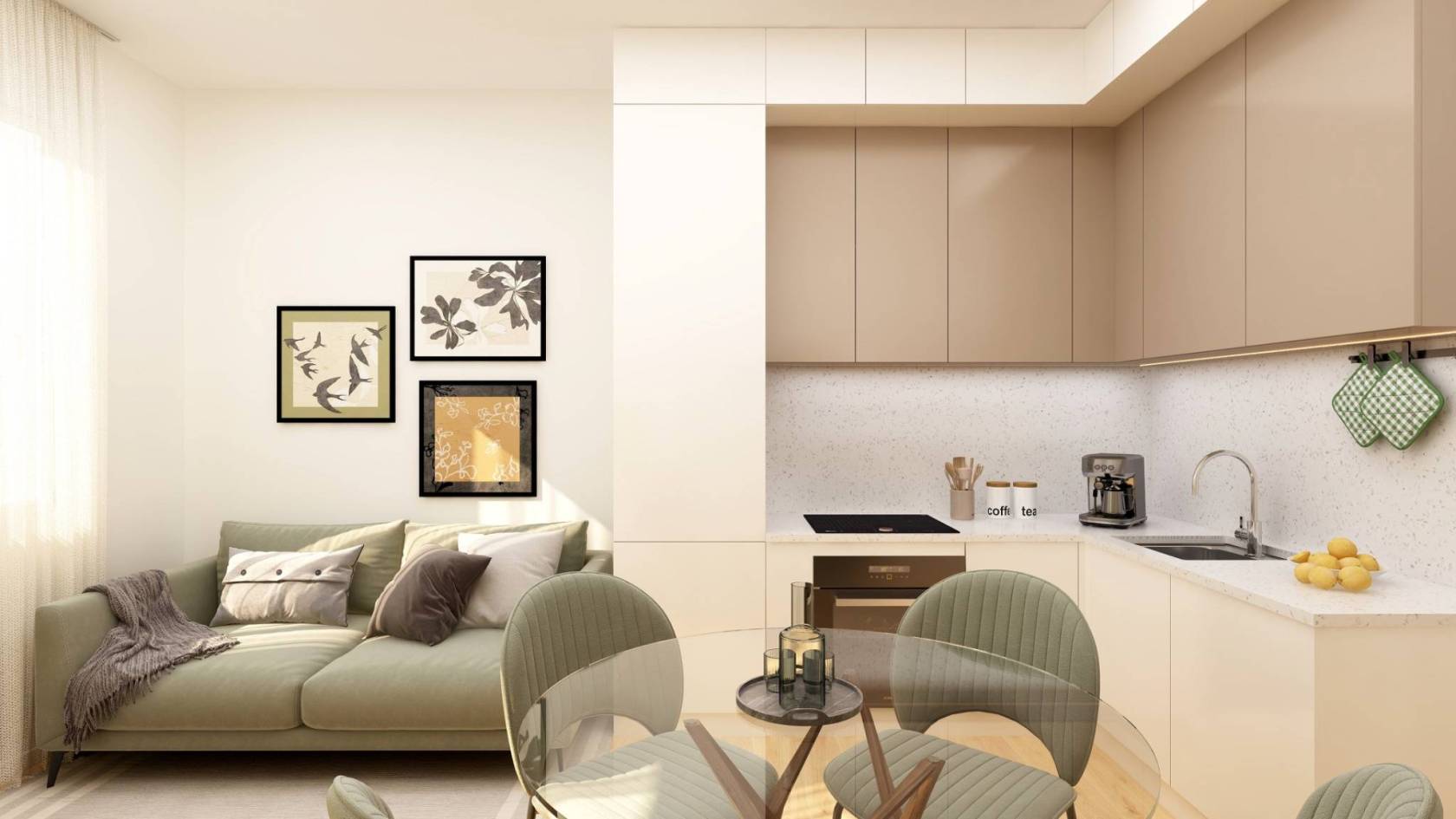 Le foto pubblicate sono render che riproducono gli ambienti con esempi delle finiture di cui verrà dotata l'unità abitativa.