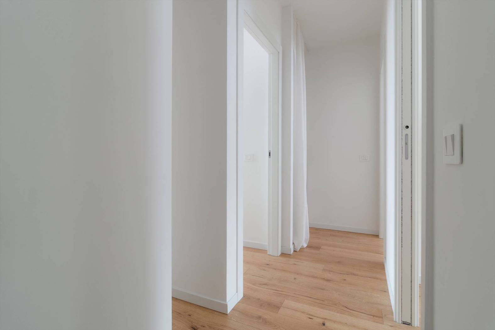 Le finiture sono signorili: pavimento in parquet, allestimenti bagno completi di sanitari, mobile con lavabo e specchio con luce led, cristallo doccia e colonna doccia idromassaggio, serramenti interni di design, serramenti esterni in pvc con doppi vetri, tapparelle elettriche, porta blindata, predisposizione aria condizionata.